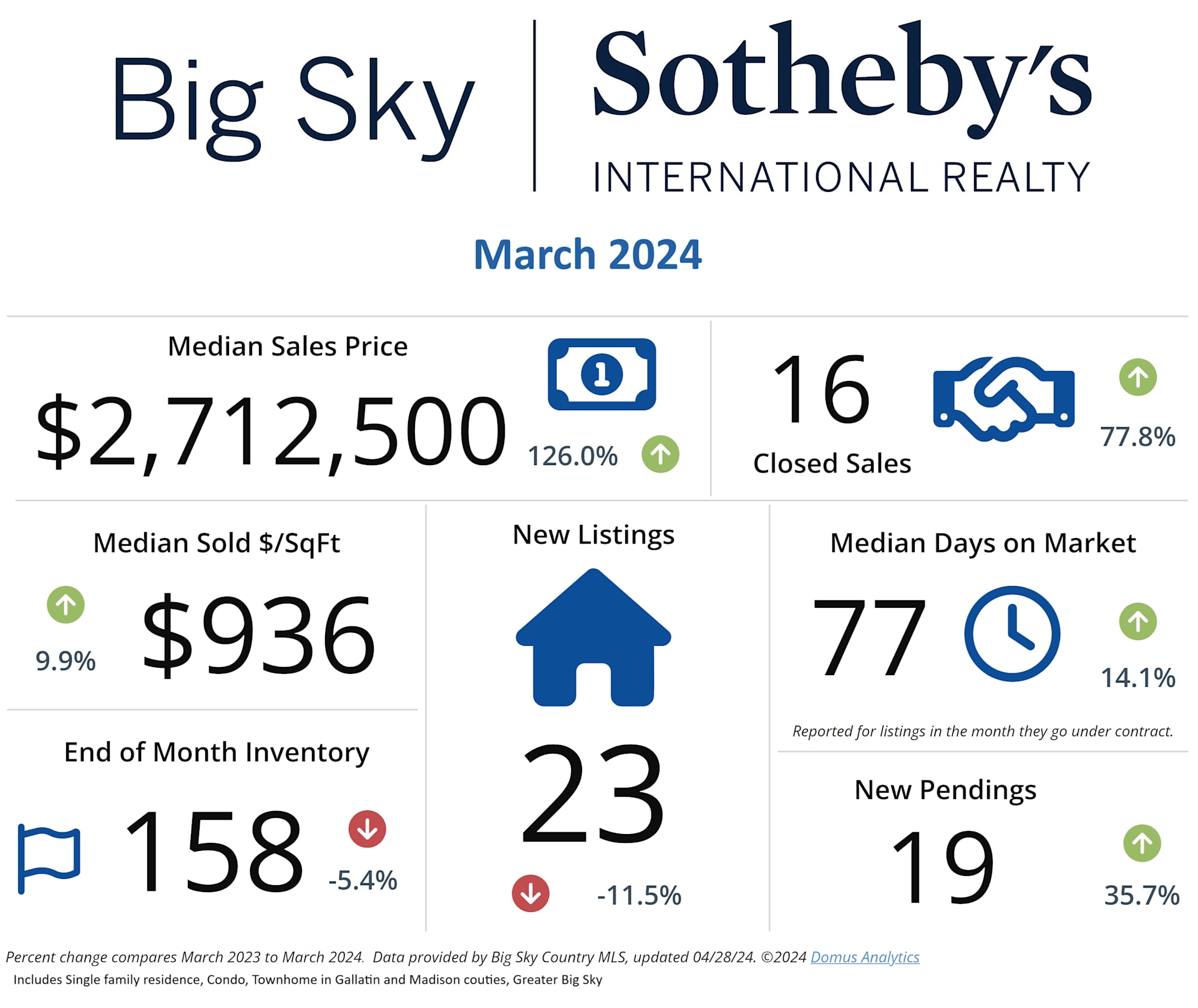 Having the best information means making the best decisions. This comparison of March 2024 with one year ago is a piece of the puzzle and shows the continued trend of price increases. Disclaimer: The closed sales in early 2024 include developer properties in Moonlight Basin and Spanish Peaks that have been under constructions since 2022.
